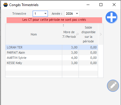 S'affiche la liste des personnes qui ont droit aux congés trimestriels