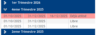 En cliquant sur le trimestre sélectionné on peut avoir le détails des jours utilisés.